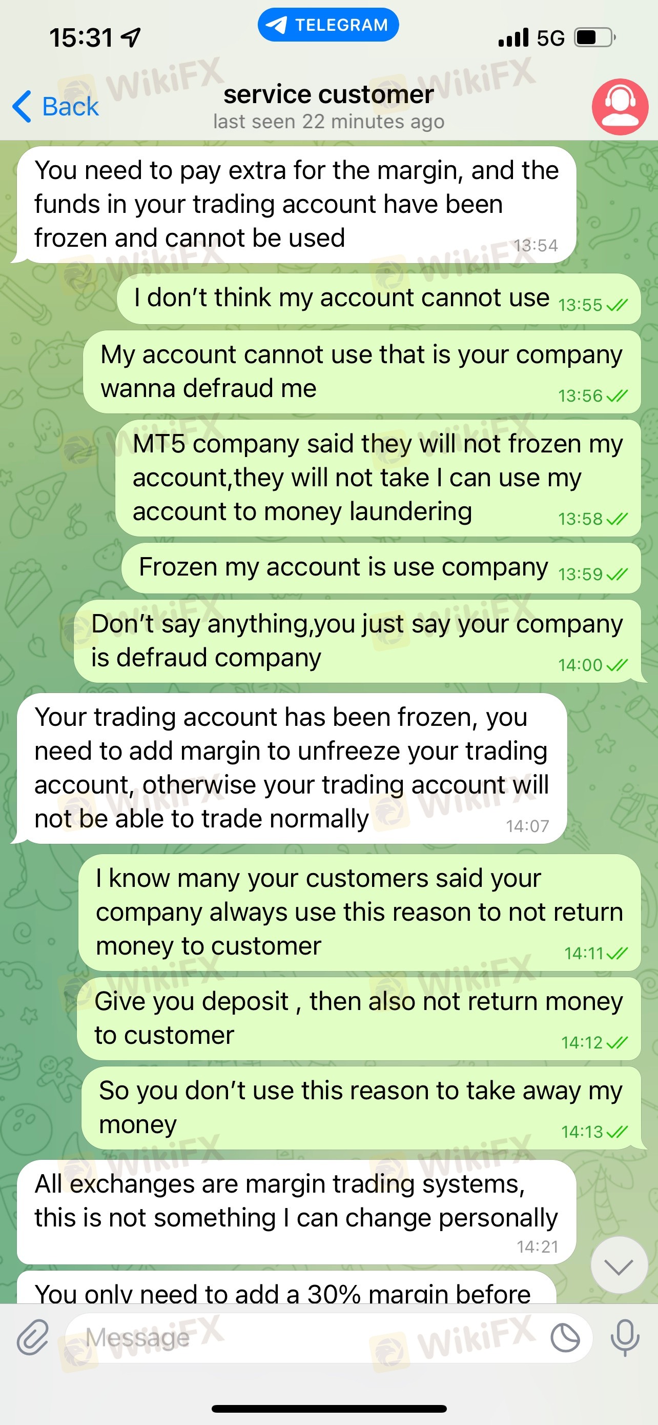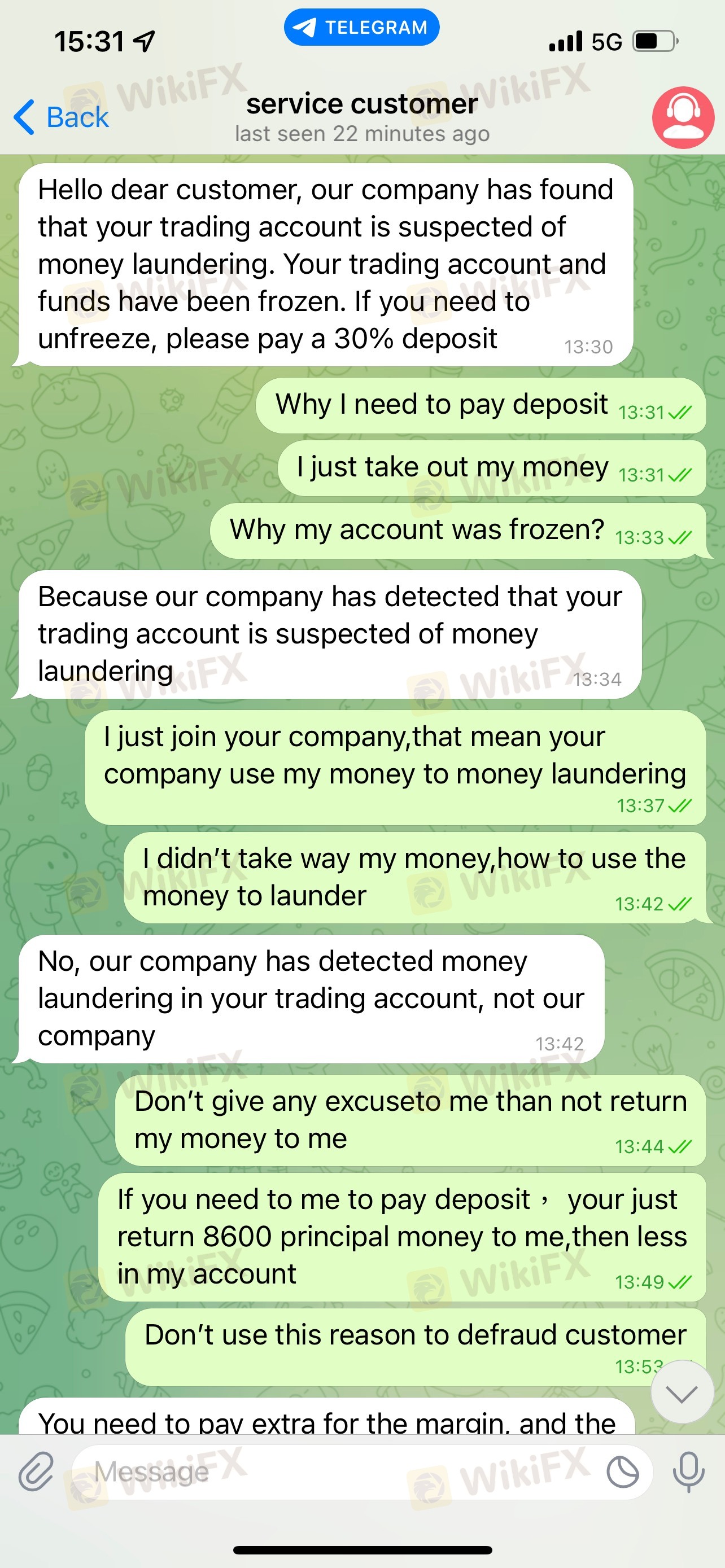 بعد وصول الأموال إلى هذه الشركة ، لديهم العديد من الأعذار عندما أريد سحب الأموال. سيقولون إن حسابي مُجمّد ، وعليّ أن أدفع وديعة بنسبة 30٪ لفتح الحساب. هذه شركة احتيال ، لا يمكنني استرداد أموالي