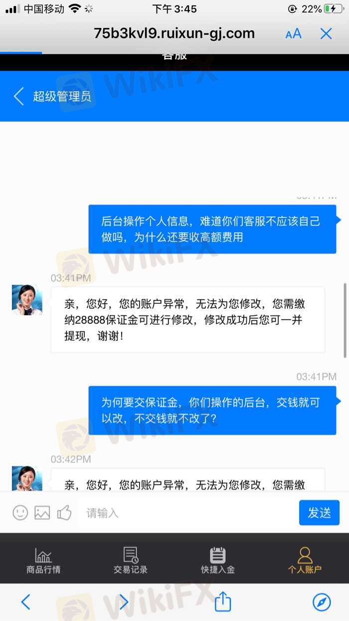 收取高额保证金,正规平台客服应该收取费用给客户改资料吗,就是骗子,一环紧扣一环,钱越来越多出不了金,很恼火