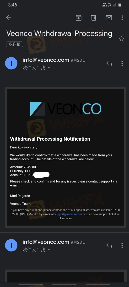 I withdrew in VEONCO on September 23. But I haven’t received money till now. I wanna get my money back asap.