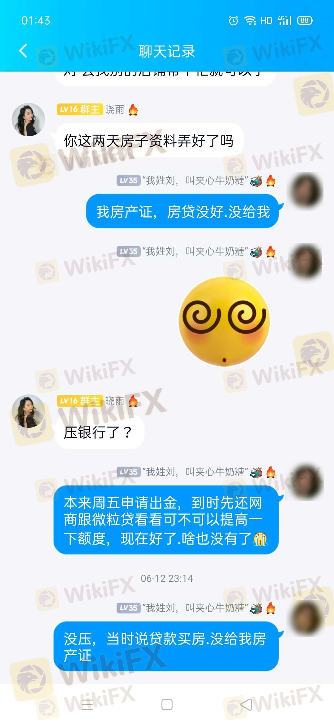 6月10周五晚上申请出金,回我说T+1,到周六又说要统一周一到。在6月12号周末晚上就把我爆仓了