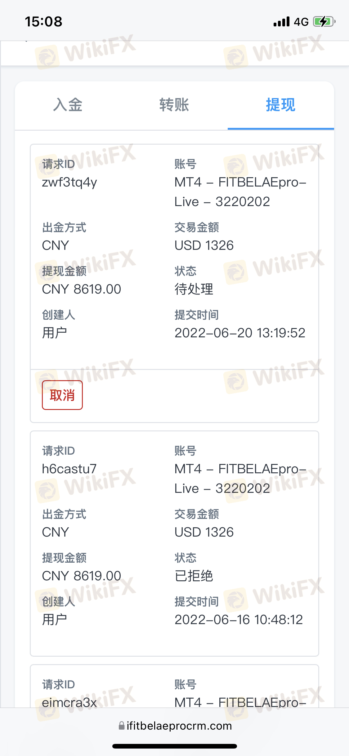 Around April 20, 2022, Jing Ru, who claimed to be Assistant Kong Jie, added QQ to QQ, and was pulled into a stock recommendation group. On May 8, a live class of the nuclear war financial circle was opened, claiming to be the Hongchuang Fund Organization. In the stock speculation competition, the finalists are Jiang Kaijing, Li Sen, Liu Yong, and Kong Jie. Each account has one vote every day. The one with the most votes at the end of the competition can get the 1.5 billion fund provided by Hongchuang Fund for a period of 2 years of management. At the beginning of the live broadcast class, every day was to share the market, explain stock knowledge, and recommend stocks. Later, Kong Jie came up with a private equity ticket Xuetian Salt Industry that claimed to be three times the bull stock. Bitcoin profit plan, and then Kong Jie also launched the Bitcoin profit plan. I opened a FITBELA EPRO account under the guidance of Jingru's sharing website in class and in the classroom, downloaded the computer version of the FITBELA Epro MT4 Terminal software and the mobile version of the MetaTrader 4APP, and learned how to buy and sell Bitcoin under the guidance of Jingru's assistant. In the class, Kong Jie is divided into 4 echelons according to the size of the funds. The lowest echelon requires a fund of not less than 50,000 US dollars. Before 20:00 on June 7th, every order in the live class is profitable. At 20:00 on June 7th, 2022, Beijing time, Jiang Kaijing's class time will buy more orders, and the purchase price is about 29300 points. After the purchase, the market fell by more than 6,000 points and quickly pulled back within 1 minute. Many people in the class had their accounts liquidated. When looking at the Sina Bitcoin price and the Ouyi Bitcoin price, the price of Bitcoin during this period was not lower than 29,000 points, but only the software recommended for us to use showed a Bitcoin price of about 23,000 points. After the liquidation, we asked an assistant to apply for account clearing, but the application for withdrawal was rejected, and the withdrawal was rejected.