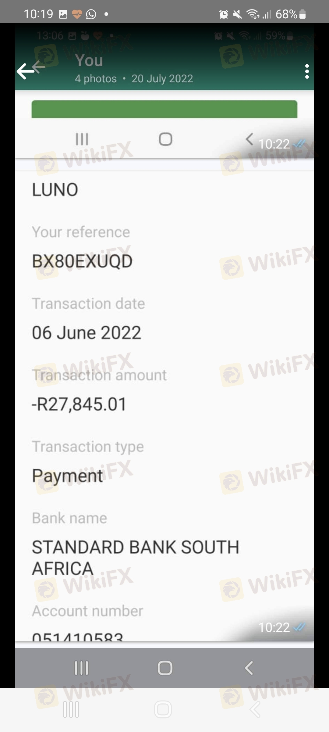 Invirtió con la persona Doris de NSBroker... hizo compensación de mantenimiento ahora Fendatrade. Me pidieron que pagara las tarifas de bitcoin a ZAR, el impuesto sobre la renta, la tarifa de corretaje, la tarifa de transferencia por cable... ¡La directora ejecutiva Maria Cardone y Doris me prometieron un pago después de cada pago! ¡¡Nada aún!! Pagado en LUNO Standard Bank acc. Comp y Alisia Ivan de Global Bank me pidieron que pagara una tarifa de tarjeta de transferencia wirex de $ 6500 ahora... el pago final antes del pago, ¡pero no confíes en ellos! ¡Piensa que me están estafando!