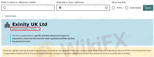 我在英国FCA输入证号777911搜索到的公司为Exinity UK Ltd,登记网址https://www.forextime.com/uk;该平台的网站LOGO、品牌名称,以及宣称的监管信息与合规交易商FXTM富拓相同,经咨询FXTM富拓平台官网客服,核实该平台与他们无关,是假冒FXTM富拓的冒牌公司。