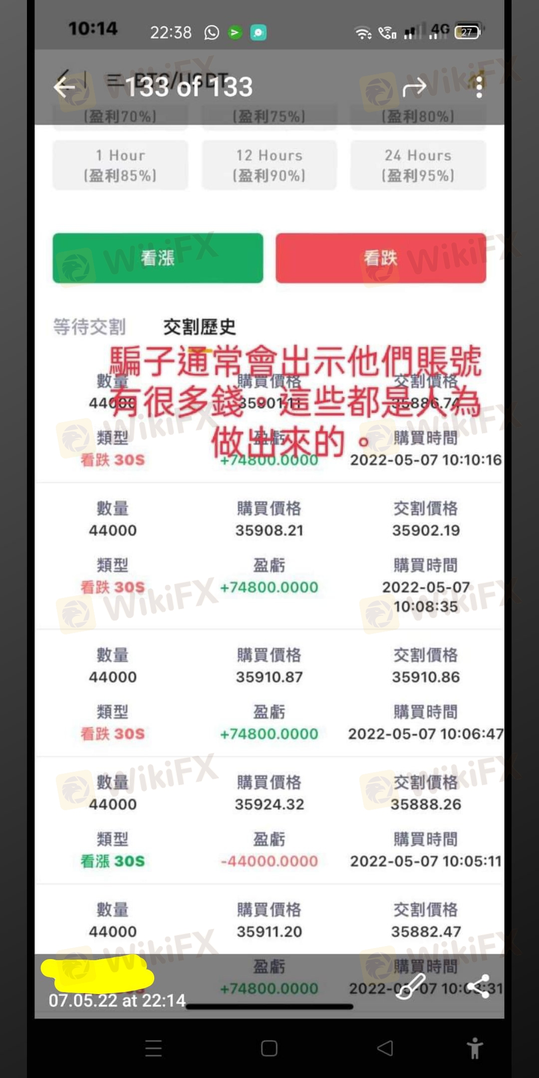 第一次小額提起,放下戒心。第二次24小時審核或區塊鏈堵塞,最後一次,觸動大提款通道,要交40巴仙以你現在的倉位。期間不斷叫你建倉,誘導你倉越大,利潤越大。騙子會出示你和他一起做交易和出入金的記錄,都是由他們操控,記錄都顯示很高額,讓你心動,一心動,接下來你就痛。通常會叫你入金,才肯帶你交易,一天一次,讓你期待,不入就不帶,這就是他們的心理戰術。這些騙子還會鼓勵你,要做就不要畏首畏尾,要堅持,要去創造動力,所謂的動力,就是沒錢,去想辦法借。他們不會理你死活,他們只會榨乾你身上最後一滴血。貪字就是貧,這次我狠狠的讓我體驗到,也是血的教訓。希望大家遠離這些小和黑心平台。寧吃開心粥,也不要吃愁眉飯。我慶幸沒有去借地下錢莊或信用卡,不然真的是翻不了身。