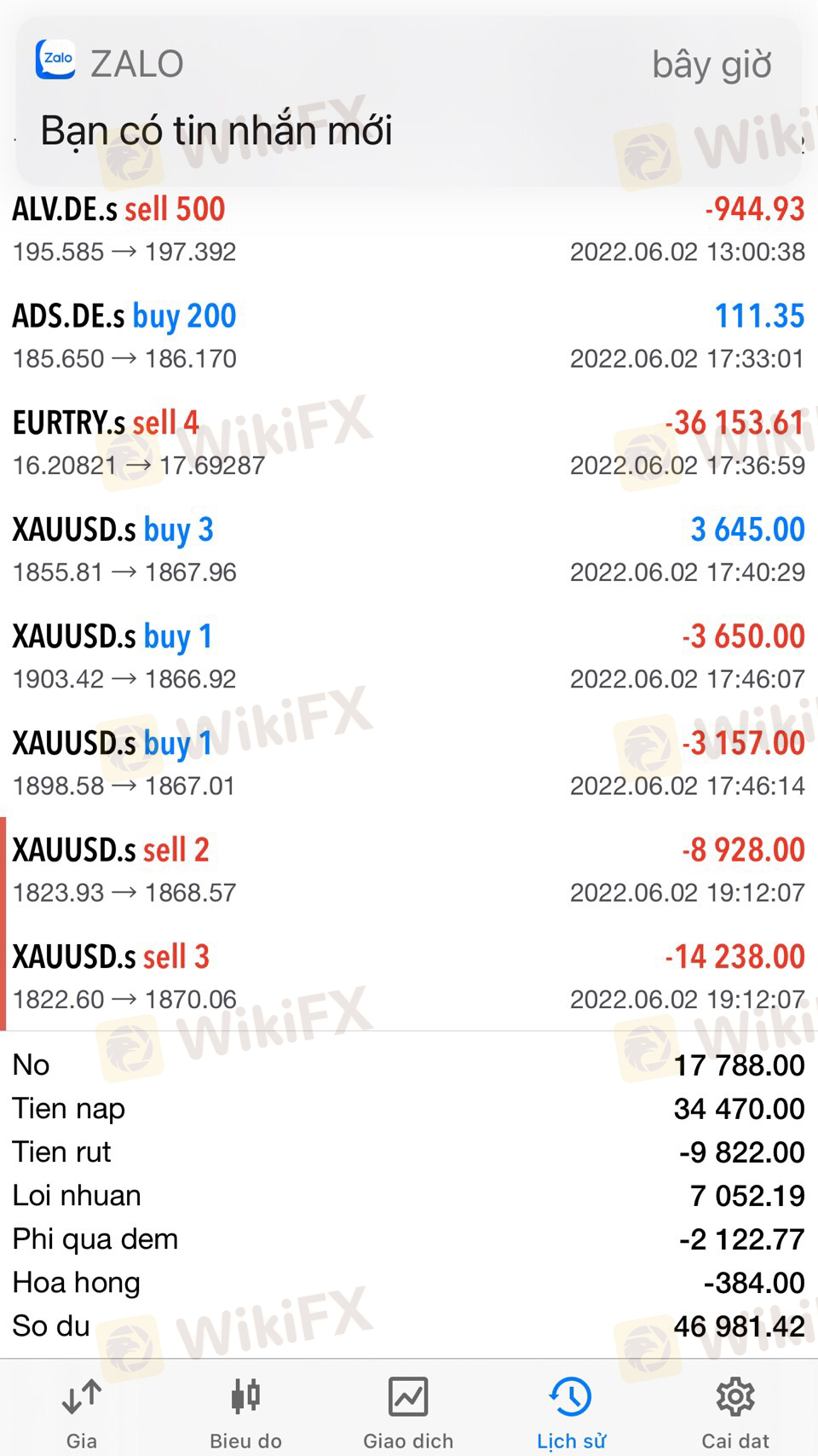 mình là nđt mới, chưa biết gì về thị trường ck, nhưng qua sự đeo bám gọi điện của ib hàng mấy tháng trời, qua tư vấn thấy hợp lý, m đồng ý mở tk 500$ để kiếm thêm thu nhập, khi mở tk, hỗ trợ 1:1 kêu mình vào vốn để mua cổ phiếu, m nghe vào 10K,nhưng khi vào cho đánh hầm bà làng từ cổ phiếu tới vàng, bạc, tiền, toàn lot to và không bao giờ hướng dẫn cắt lỗ, khi có biến động mạnh gọi ko thấy đâu, khi âm quá rồi chỉ cân lệnh, có lệnh treo đến cả tháng không hồi, có hơn 1 tháng phí qua đêm lên tới gần 3k đô, khi có sự cố thì gọi không thấy đâu, tới khi tk âm gần sát số dư thì kêu vào thêm vốn để gỡ, tâm lý mất tiền quá nhanh nên sót vay mượn vào tiếp thì dc 3 hôm lại gần cháy. lần nào sát vốn ko giao dịch đc nữa thì lại có người xưng là quản lý cao cấp gọi để giục vào vốn và bảo đảm cứu tk khi vào vốn tiếp. trong khi vào 3 lần đều cháy. lần thứ 3 là lần cuối cùng thì vì ko có khả năng vào nữa mình quyết định cắt âm 1 đầu cân lệnh của 1 mã và theo đúng xu hướng dự định, vốn đang giảm âm thì ngay lập quản lý gọi bắt cân lại lệnh giữ nguyên âm. không cho cắt và chờ vào vốn tiếp mới cho xử lý. lúc đó mình hoàn toàn phụ thuộc và không hiểu biết nhưng khi biết thì đã quá muộn. mình đặt lòng tin không đúng chỗ mong các nhà đầu tư thông thái tẩy chay và tránh xa sàn này ra!