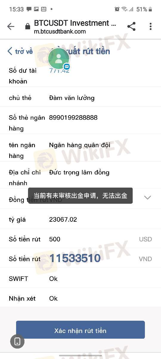 không thể rút được tiền