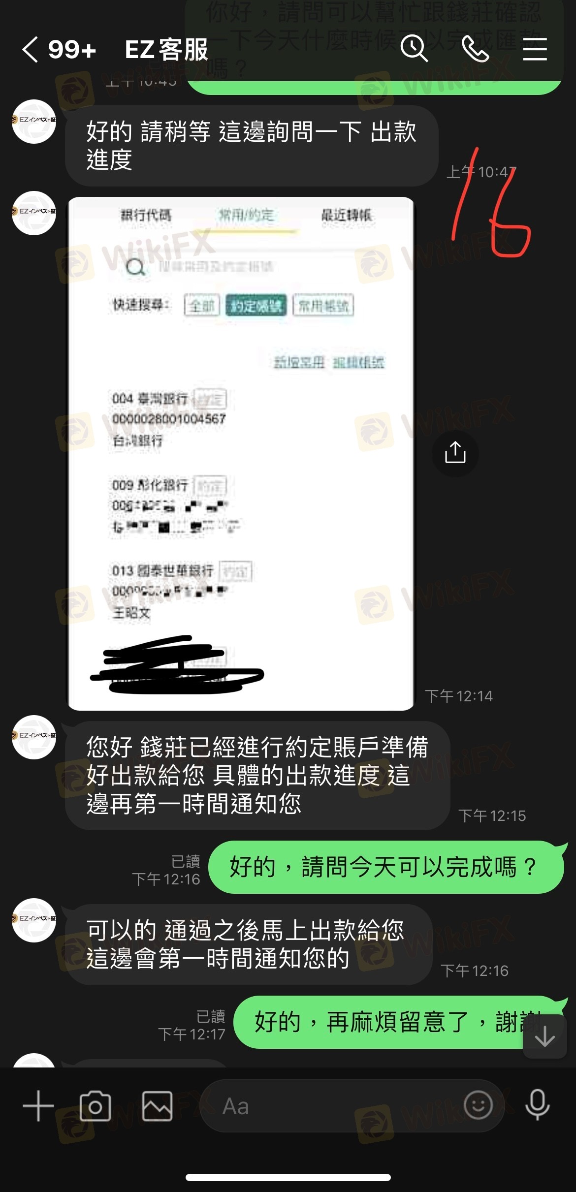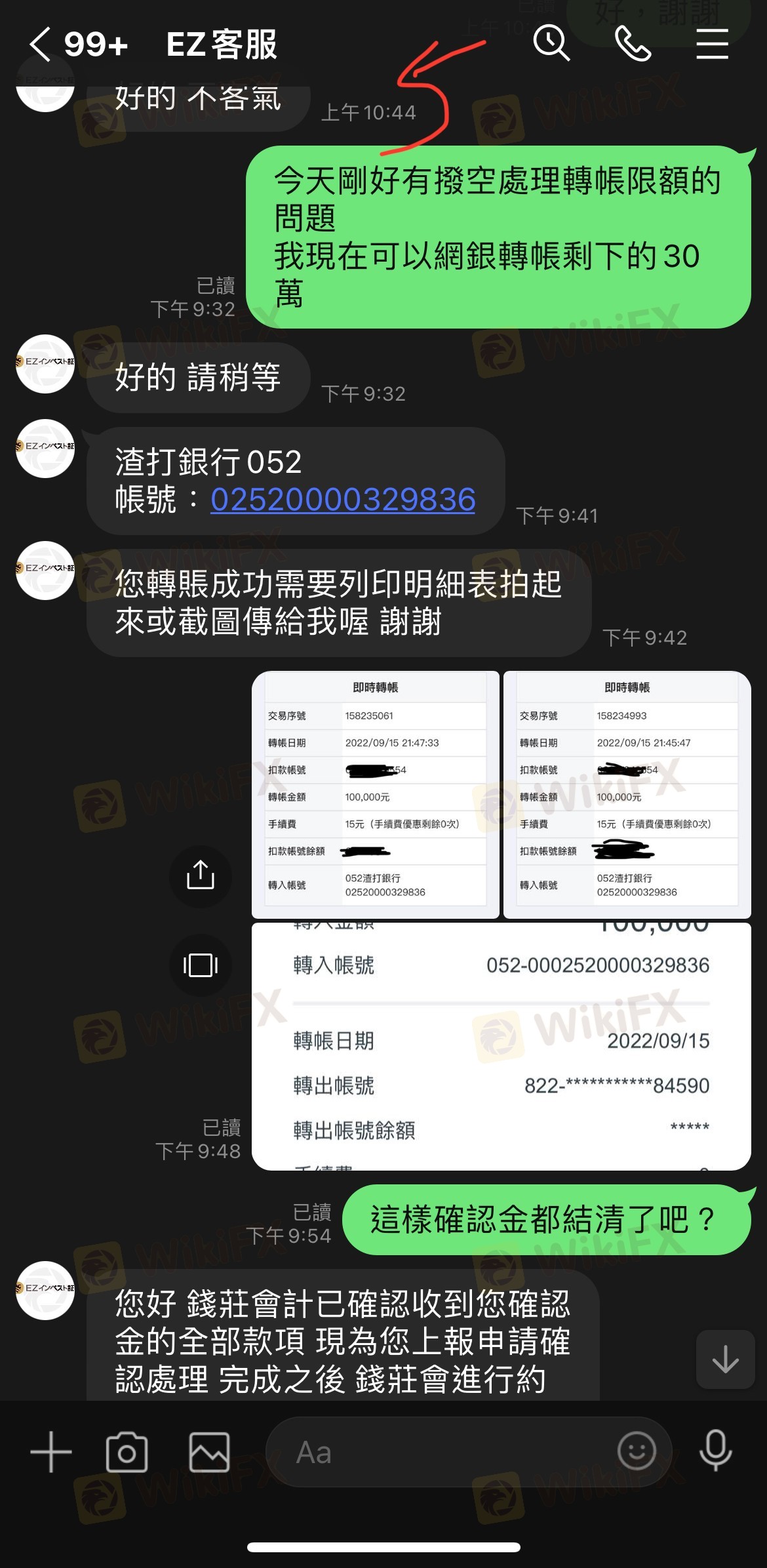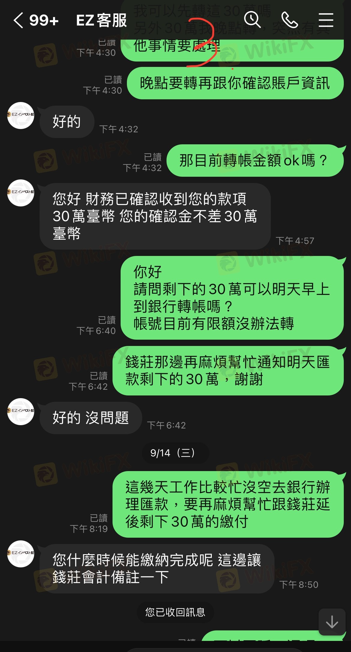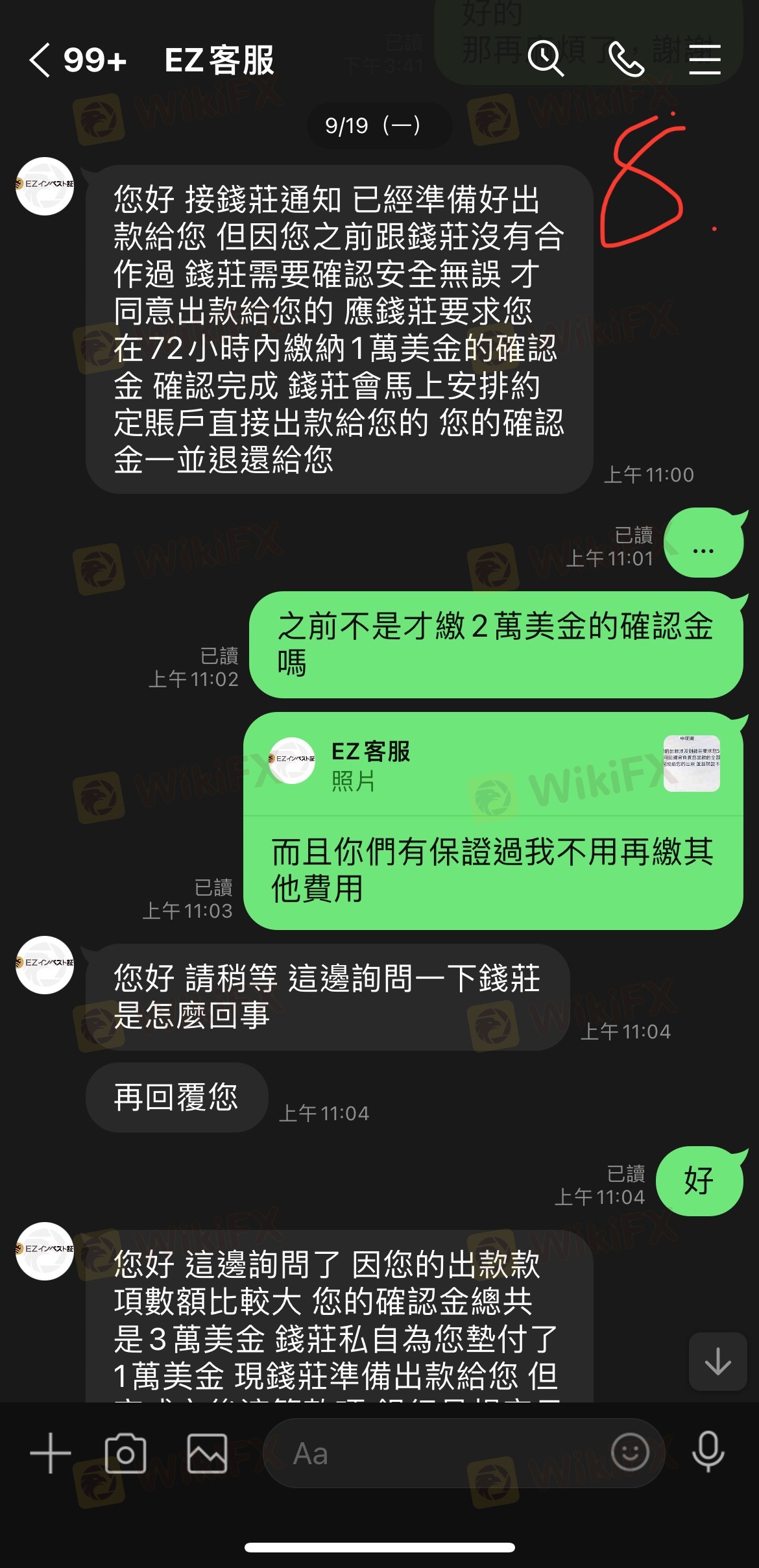 接續前一則擅自將出金交由錢莊匯款,後續持續要求繳交確認金,流程金...等各種名目的款項,並遲遲不匯款,也不履行保證函內所承諾的內容,最後說是稅務機關凍結了所有款項,卻還要求繳流程金才成完成匯款,總計90K USD, 連一塊都沒有退還