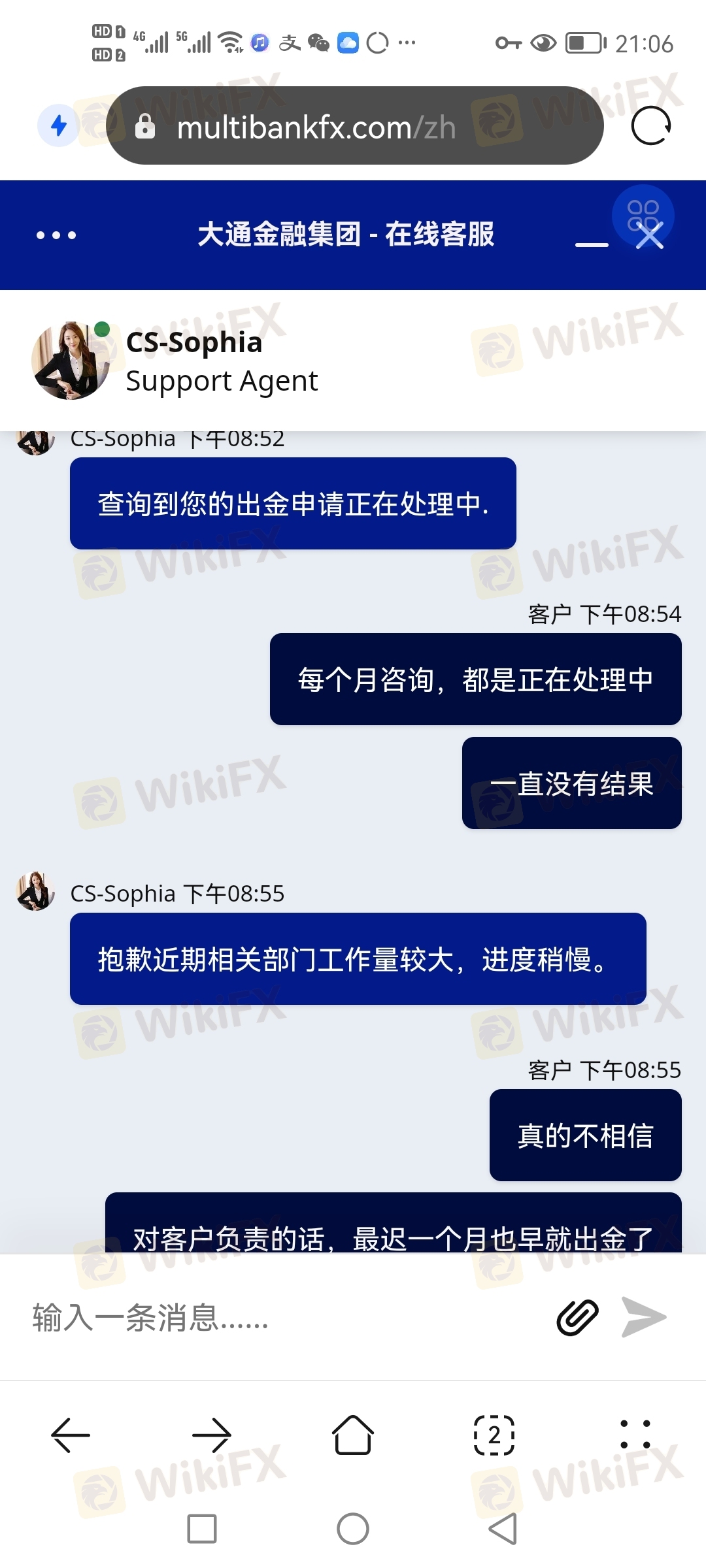 Tôi đã nộp đơn xin rút tiền ba lần kể từ tháng 11 năm ngoái và nó vẫn chưa được xử lý cho đến nay. Hầu như hàng tháng, tôi đều liên lạc với bộ phận chăm sóc khách hàng và gửi email để liên lạc, nhưng không có kết quả.