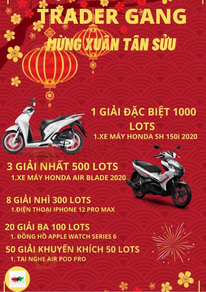 - Giao dịch tại sàn TMGM - Sàn chuẩn và uy tín nhất nước Úc - Thời gian tham gia từ nay đến 0h00 ngày 1/1/2021 âm lịch - Giải thưởng sẽ được trao ngay khi nđt đạt đủ điều kiện yêu cầu