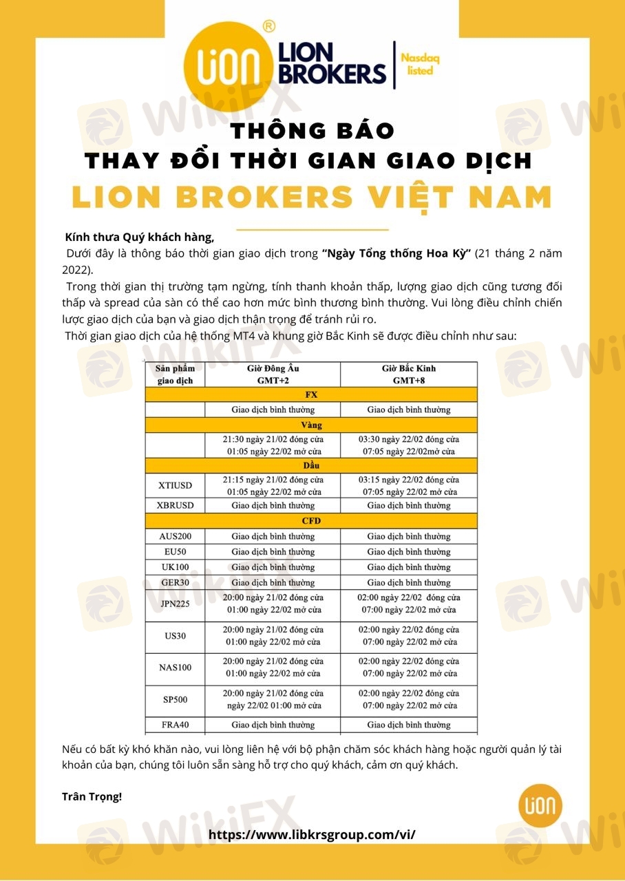 NgànhLion Brokers Việt Nam xin thông báo về thay đổi thời gian giao dịch "Ngày tổng thống Mỹ"