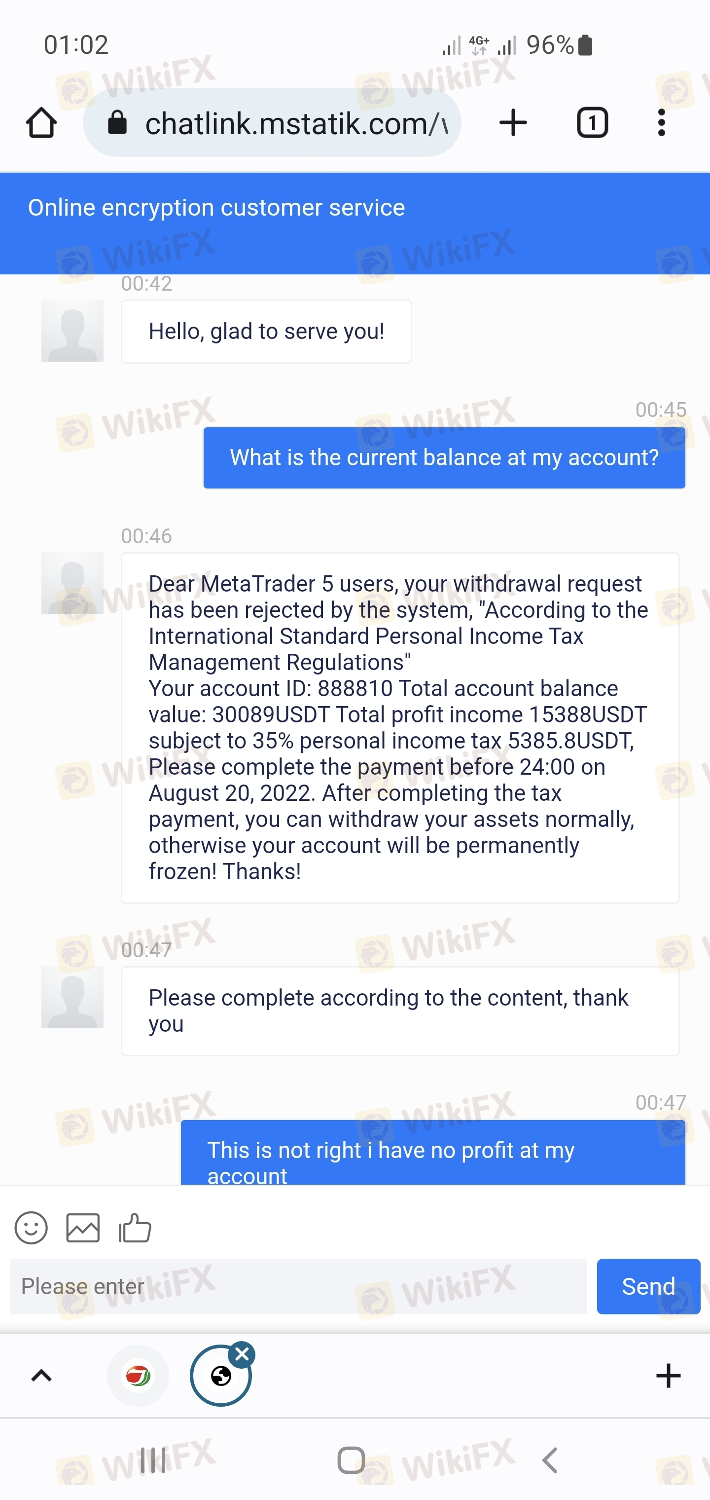 大家好。我想告诉你关于黑交易商的事 JINKRA有限公司是一个不能出金的诈骗平台。在您将资金存入平台并尝试提取少量资金后,他们会退出以表明他们运作良好。但是当你有少量利润时,他们开始要求对利润征收 35% 的税,并且不提取资金。我开始进一步交易,我的利润变成负数 -1706 美元,之后我收到了来自平台的一封信,说我被罚款 3000 美元,并威胁要封锁我的账户。技术支持目前没有回复网站上的电子邮件或实时聊天。帮我取回我的钱。