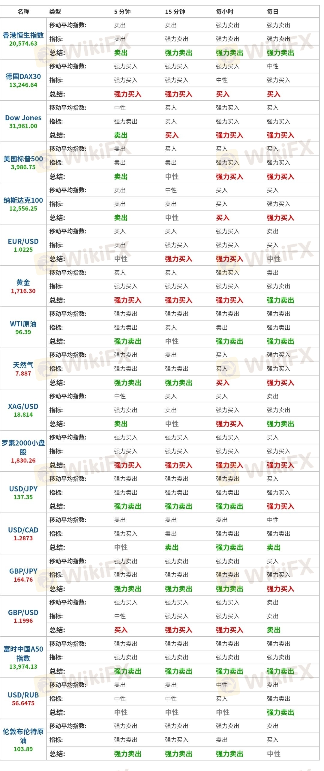 技术指标今日各大品种纯技术指标方向分析
