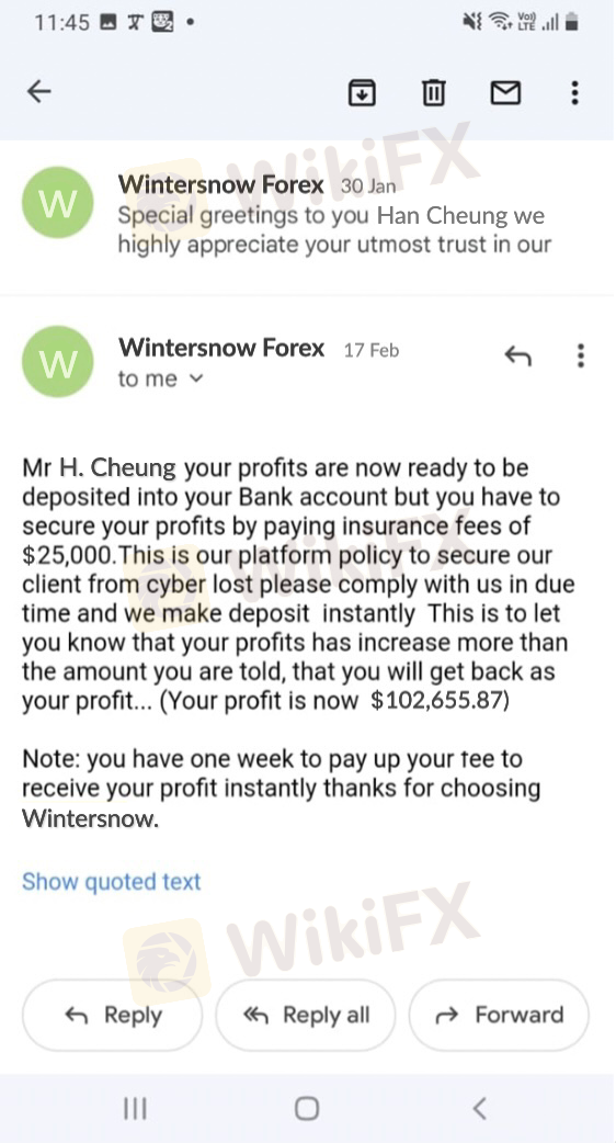 It is a crying shame that companies like Wintersnow can operate and continue to sweet talk people out of their money. They kept asking me for more money even after i was supposed to withdraw so i kept an evidence of the rejected wintersnow withdrawal below as well as the successful withdrawal option i opted for. On the grounds of this, i want aspiring investors to learn from me and cut all ties with wintersnow forex as they are certain to fail you